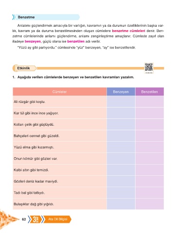 1. Aşağıda verilen cümlelerde benzeyen ve benzetilen kavramları yazalım.