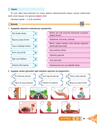 1. Aşağıdaki deyimleri anlamlarıyla eşleştirelim.