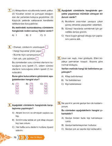 7. (1) Ahtapotların vücutlarında kemik yoktur. 10. Aşağıdaki cümlelerin hangisinde ger-