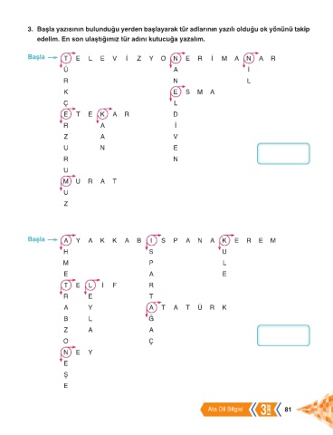 3. Başla yazısının bulunduğu yerden başlayarak tür adlarının yazılı olduğu ok yönünü takip