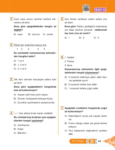 1. Canlı veya cansız varlıkları belirten keli- 5. Aynı türden varlıklara verilen adlara cins