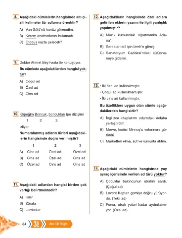 8. Aşağıdaki cümlelerin hangisinde altı çi- 12. Aşağıdakilerin hangisinde özel adlara