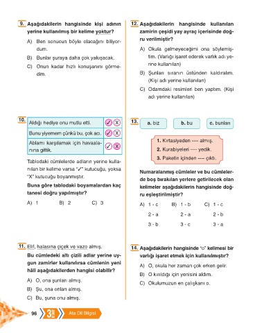 11. Elif, halasına çiçek ve vazo almış. 14. Aşağıdakilerin hangisinde “o” kelimesi bir