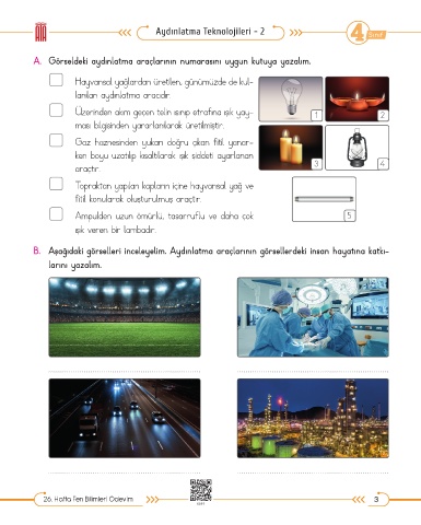B. Aşağıdaki görselleri inceleyelim. Aydınlatma araçlarının görsellerdeki insan hayatına katkı-
