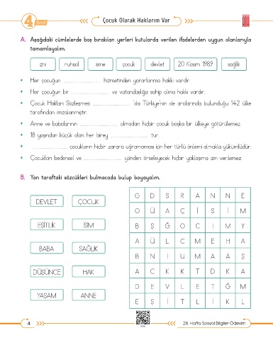 4 28. Hafta Sosyal Bilgiler Ödevim