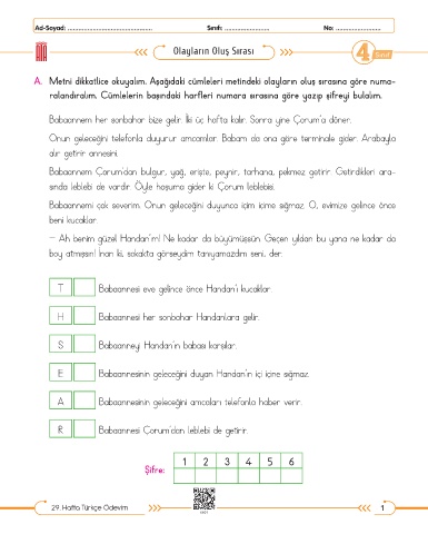 A. Metni dikkatlice okuyalım. Aşağıdaki cümleleri metindeki olayların oluş sırasına göre numa-