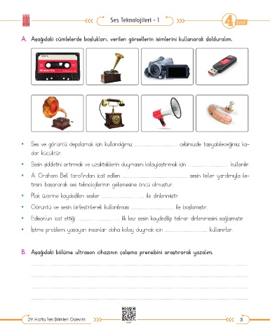 B. Aşağıdaki bölüme ultrason cihazının çalışma prensibini araştırarak yazalım.