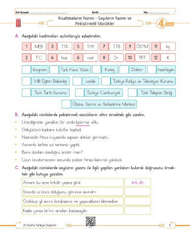 A. Aşağıdaki kısaltmaları açılımlarıyla eşleştirelim.