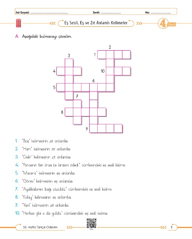 A. Aşağıdaki bulmacayı çözelim.