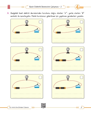 A. Aşağıdaki basit elektrik devrelerinden kurulumu doğru olanları “✓”, yanlış olanları “✗”