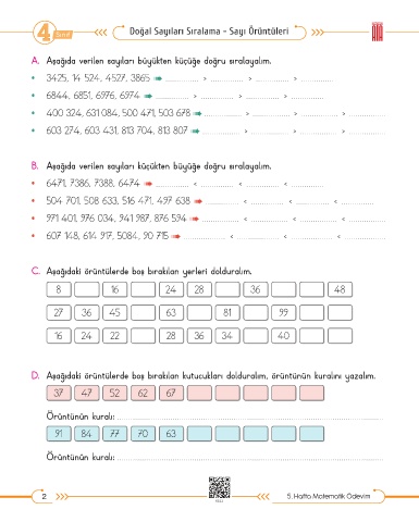 Doğal Sayıları Sıralama - Sayı Örüntüleri