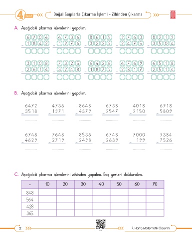 A. Aşağıdaki çıkarma işlemlerini yapalım.