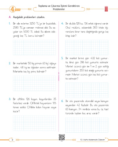 A. Aşağıdaki problemleri çözelim.