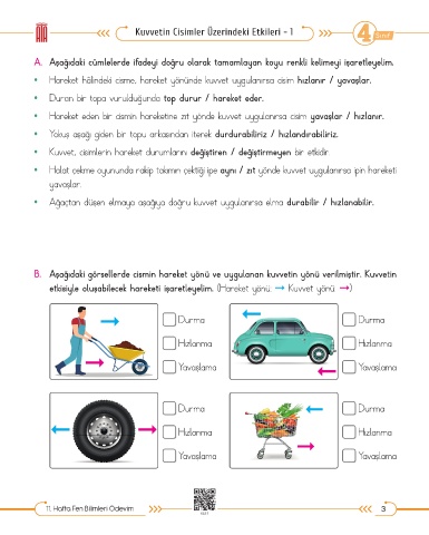 etkisiyle oluşabilecek hareketi işaretleyelim. (Hareket yönü: ➞ Kuvvet yönü: ➞)