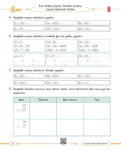 A. Aşağıdaki çarpma işlemlerini yapalım.