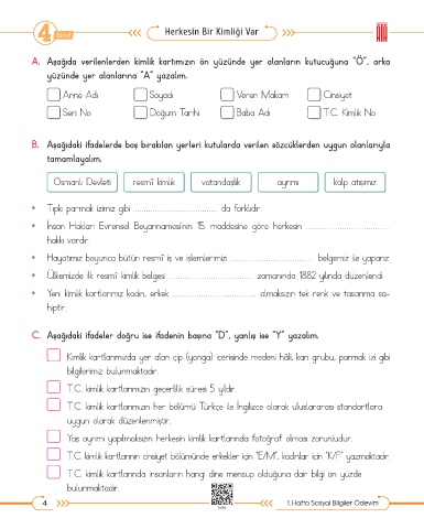 4 1. Hafta Sosyal Bilgiler Ödevim