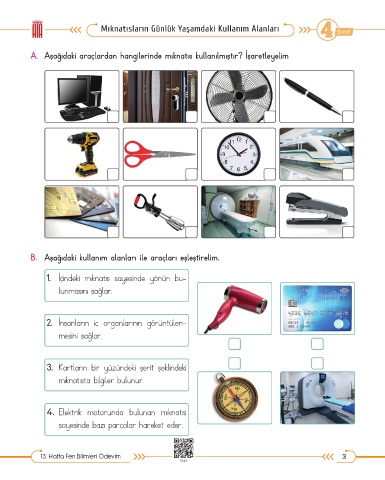 A. Aşağıdaki araçlardan hangilerinde mıknatıs kullanılmıştır? İşaretleyelim