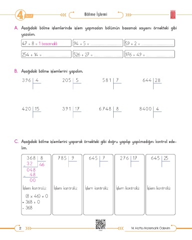 B. Aşağıdaki bölme işlemlerini yapalım.