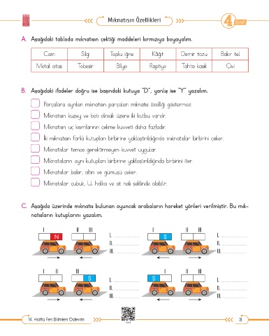 C. Aşağıda üzerinde mıknatıs bulunan oyuncak arabaların hareket yönleri verilmiştir. Bu mık-