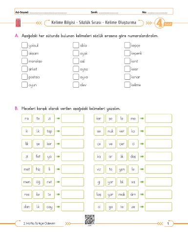 B. Heceleri karışık olarak verilen aşağıdaki kelimeleri yazalım.