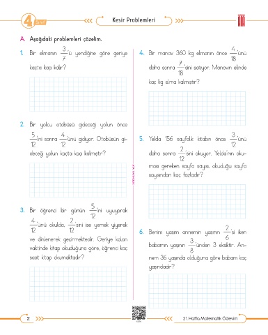 1. Bir elmanın ’ü yendiğine göre geriye 4. Bir manav 360 kg elmanın önce ’ünü
