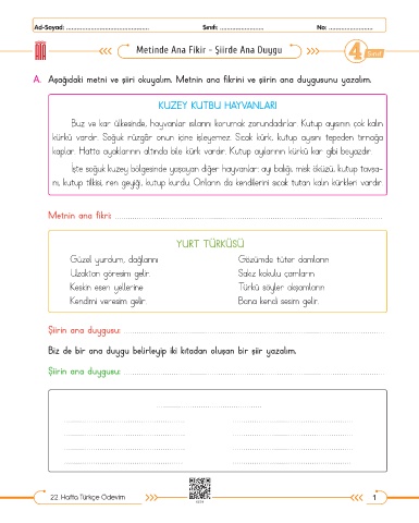 A. Aşağıdaki metni ve şiiri okuyalım. Metnin ana fikrini ve şiirin ana duygusunu yazalım.