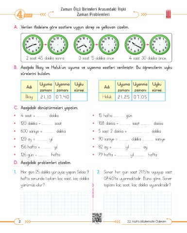 • 4 saat = ........... dakika • 15 hafta ........... gün