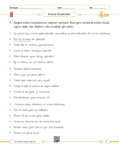 A. Aşağıda anlatım bozukluklarının nedenleri verilmiştir. Buna göre cümlelerde anlatım bozuk-