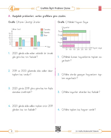 yılından kaç ton fazladır? 4. Çiftlikte toplam kaç hayvan vardır?