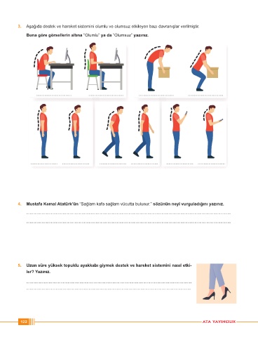 3. Aşağıda destek ve hareket sistemini olumlu ve olumsuz etkileyen bazı davranışlar verilmiştir.
