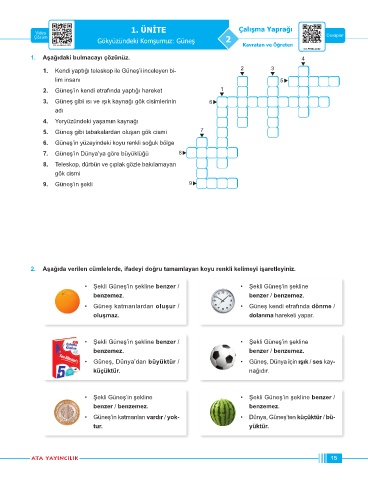 • Güneş’in katmanları vardır / yok- • Dünya, Güneş’ten küçüktür / bü-