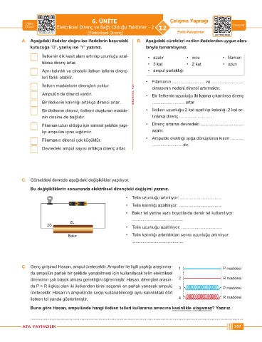 Filaman uzun olduğu için sarmal şekilde yapı- • Direnç artarsa devredeki ....................................