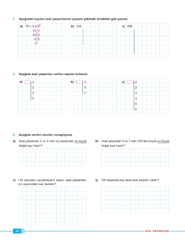 3. Aşağıdaki sayıları asal çarpanlarının çarpımı şeklinde örnekteki gibi yazınız.