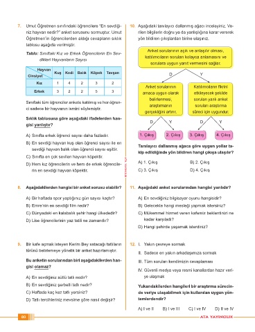 7. Umut Öğretmen sınıfındaki öğrencilere “En sevdiği- 10. Aşağıdaki tanılayıcı dallanmış ağacı inceleyiniz. Ve-