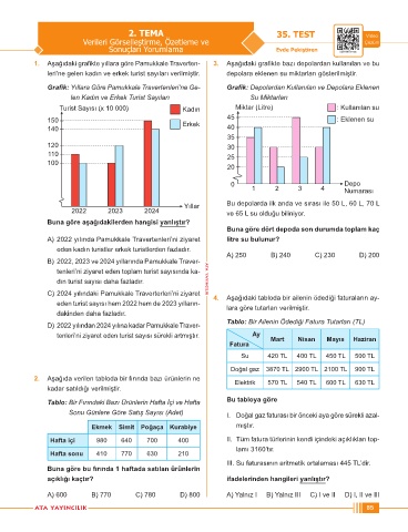 1. Aşağıdaki grafikte yıllara göre Pamukkale Traverten- 3. Aşağıdaki grafikte bazı depolardan kullanılan ve bu