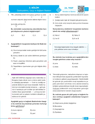 2. Aşağıdakilerin hangisinde özetleyici bir ifade kul- 5.